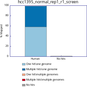 $ ./fastq_screen -conf fastq_screen.conf /home/<>/raw_data/hcc1395_normal_rep1_r1.fastq.gz Please note that for this note, I have used only human sequence (chr22) and primer sequence only. Output would be in 3 formats: html, png and txt.