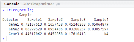 To conclude, user can use tab separated experimental data to quantitate transcripts using ddCt package.
