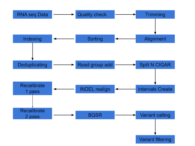 RNA seq data for this note is downloaded from here and below is the bash script for running the pipeline: ( Please note that following additional steps are also included in the pipeline, but they are commented out. Do not mix variant calling (VCF) with genomic variant calling (gVCF))