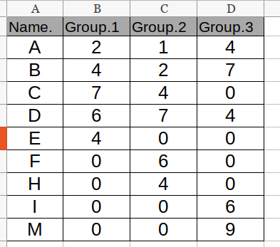 - Each column is preceded by entity names (for eg. gene names, dog names or cat names)